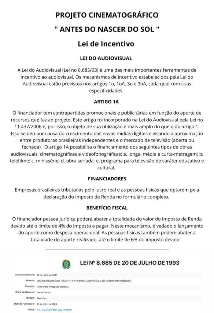 O trailer do filme poderá ser exibido nos locais em que o patrocinador sentir necessidade como redes sociais, site, e outros a combinar.